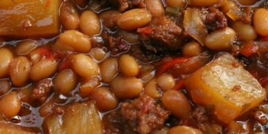 Sweet and Tangy, BBQ Beans with Pineapple and Ground Beef.