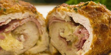 Our Prosciutto and Mozzarella Stuffed Chicken is lightly breaded, Butter Pan Fried and Slow Baked. Served with our very own Garlic Cream Sauce