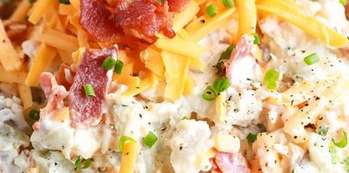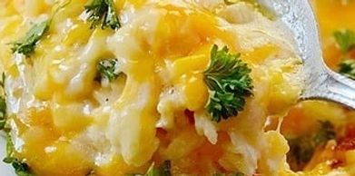 3 Cheeses blended and baked with Sticky Rice, Parsley and Green Onions.