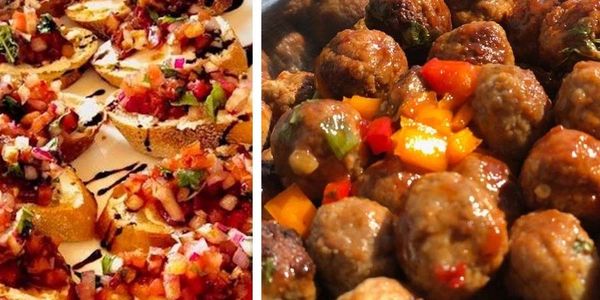 This Appetizer option comes with both Bruschetta Bites and Asian Sticky Meatballs. (Approximately 2 meatballs and 1 Bruschetta Bite per portion).